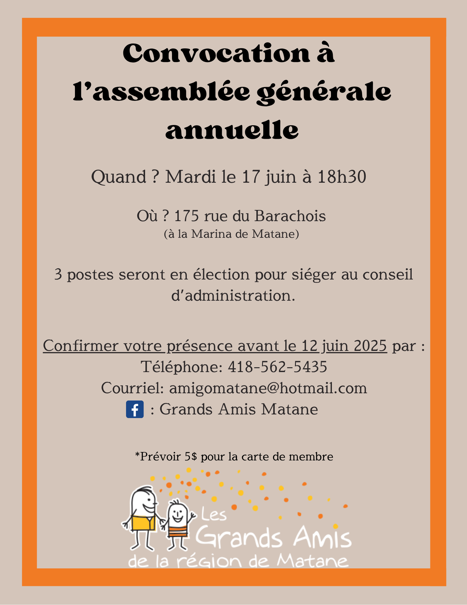 Les Grands Amis de la région de Matane est un organisme de bienfaisance et de parrainage civique qui se préoccupe du mieux-être des jeunes de 7 à 17 ans qui vivent de l'isolement social et des difficultés d'adaptation sociale.